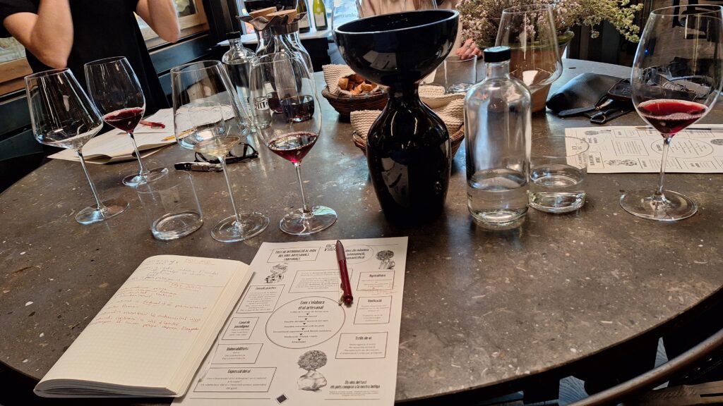 En aquest tast provarem sis vins d’estils ben diferents. Parlarem del concepte d’artesania, d’agricultura sostenible, de la importància de la microbiologia i la fermentació espontània, així com estils d’elaboració i recuperació de mètodes tradicionals. Ens plantejarem com s’expressa el vi natural a la copa i donarem alguns consells pràctics per conservar-lo. Finalment, atendrem questions com ara les vulnerabilitats a les que ens exposem a l’hora de produir vi natural i consumir-lo.
